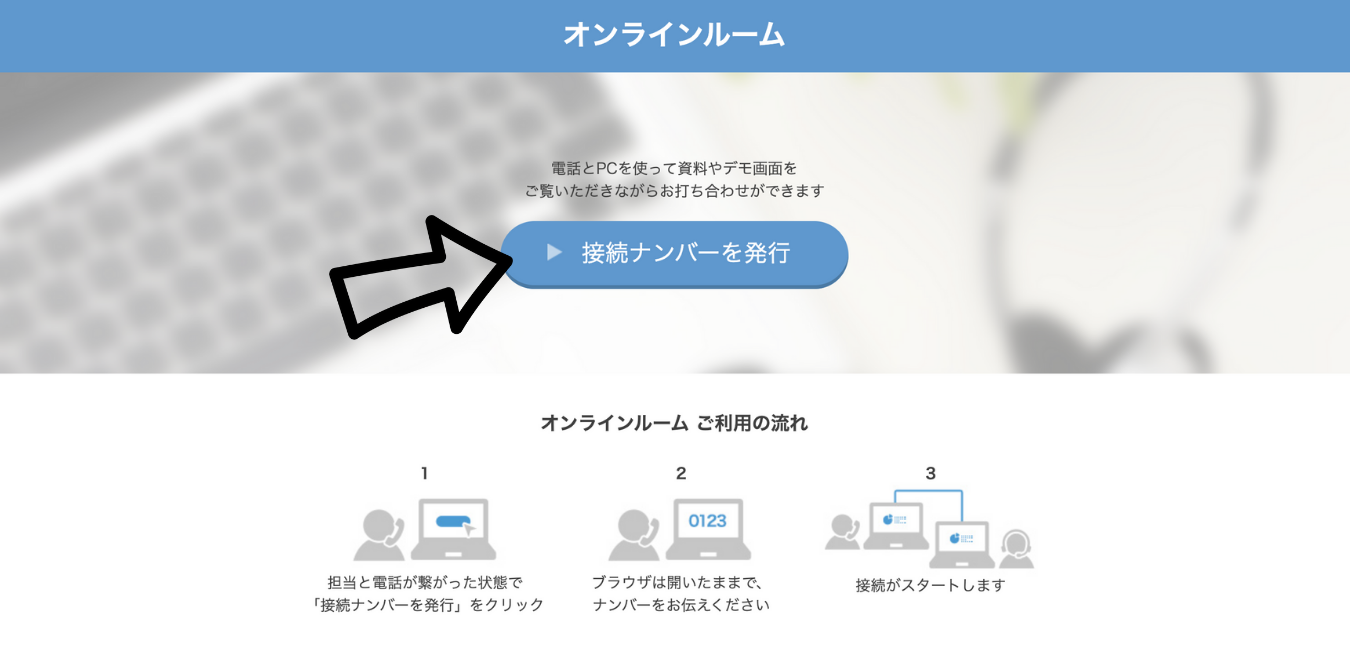 YA+Aスタッフと電話がつながった状態で、インターネットブラウザにて『オンラインルーム』にアクセスしてください。 ※スマートフォン・タブレット端末1台で行う際は、通話アプリのスピーカーをオンにしハンズフリーの状態にしてください。