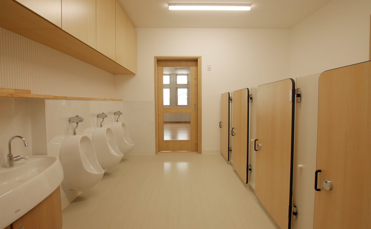 適切なデザインが施されたトイレ環境は、子供たちが安心して利用し、保育士が適切なサポート・見守りができ、トイレトレーニングをスムーズに進られます。