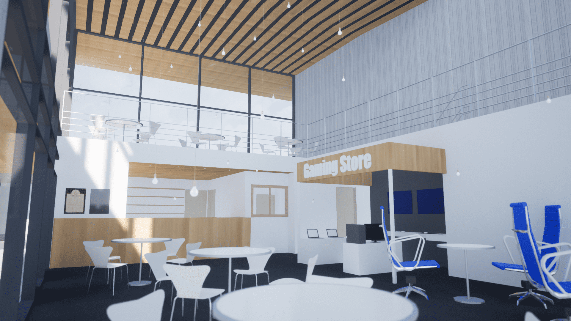 内装もシンプルで木調のアクセントや吹き抜けのデザインが取り入れられ、素晴らしい雰囲気が漂っています。動線もシンプルで、働くスタッフが快適に過ごせるように設計されており、効率的な運営ができる環境が整っています。
