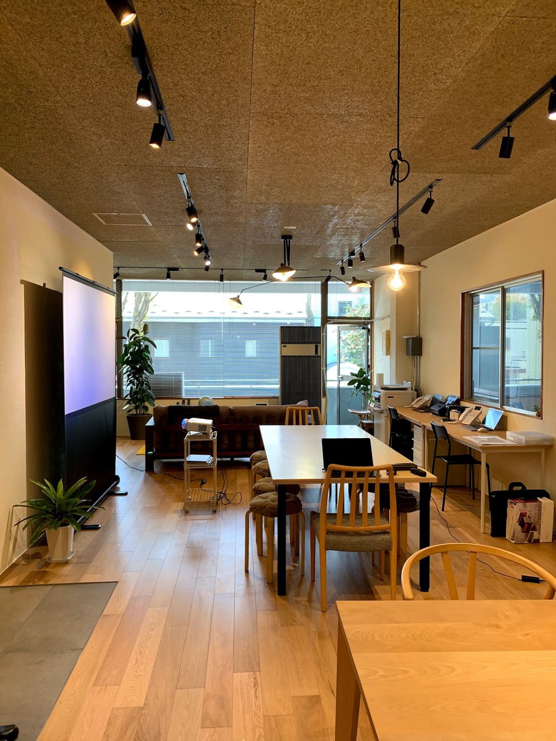 コンパクトなオフィスですが、個人のスペース、共同作業スペース、お客様対応スペースとオフィスとして必要な場所がすべてそろっています。