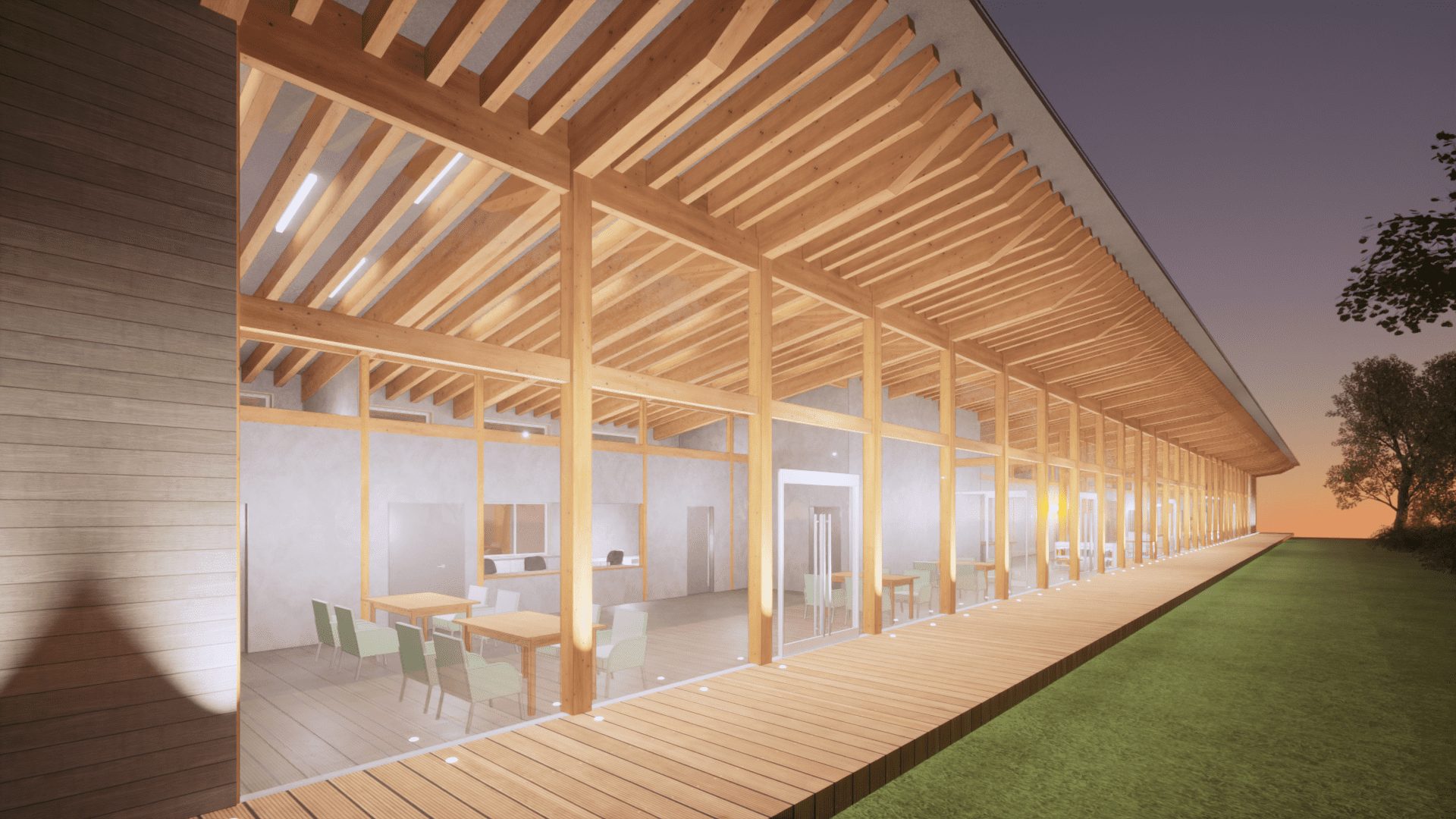 この施設のデザインは、一見すると福祉施設には見えないモダンなデザインで、利用者の皆様にも快適に過ごしていただける空間が提供されています。また、施設のコンセプトであるまちづくりも実現でき、地域に根ざした施設ができあがりました。