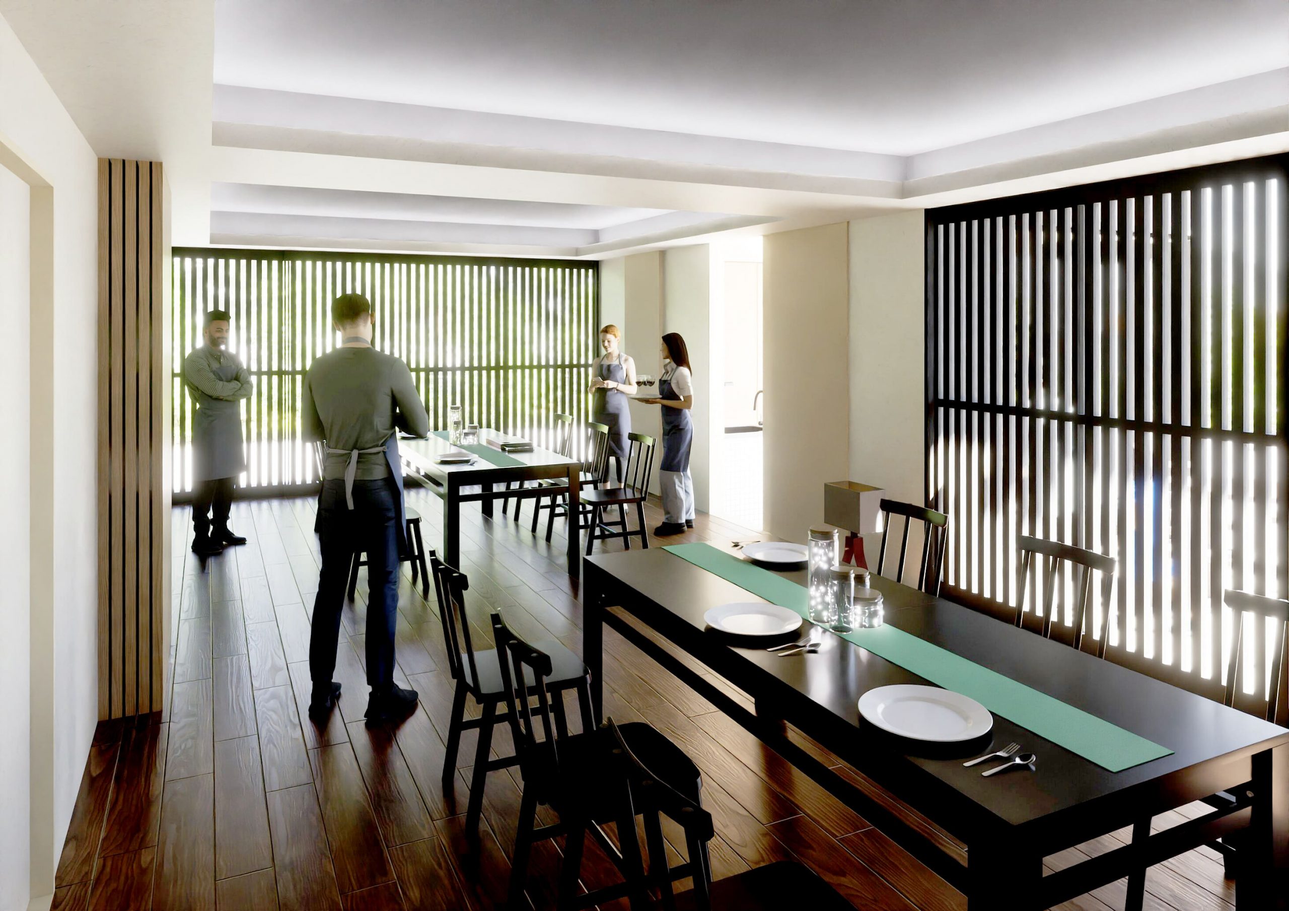 内装もシンプルで木調のアクセントや吹き抜けのデザインが取り入れられ、素晴らしい雰囲気が漂っています。動線もシンプルで、働くスタッフが快適に過ごせるように設計されており、効率的な運営ができる環境が整っています。