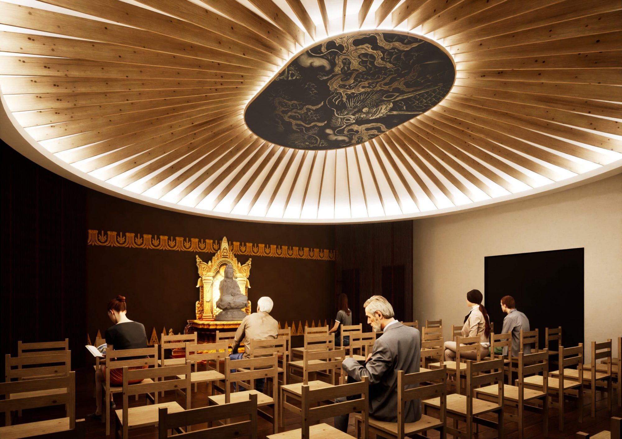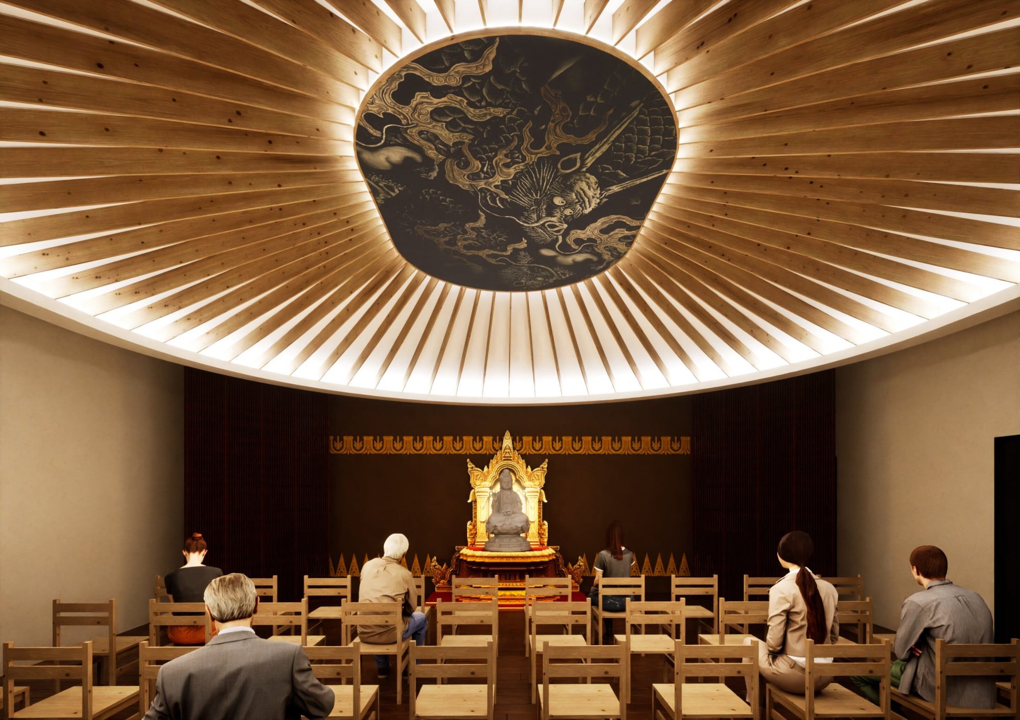 伝統的な仏教建築様式を取り入れ、静寂と安らぎを感じられる空間を創造