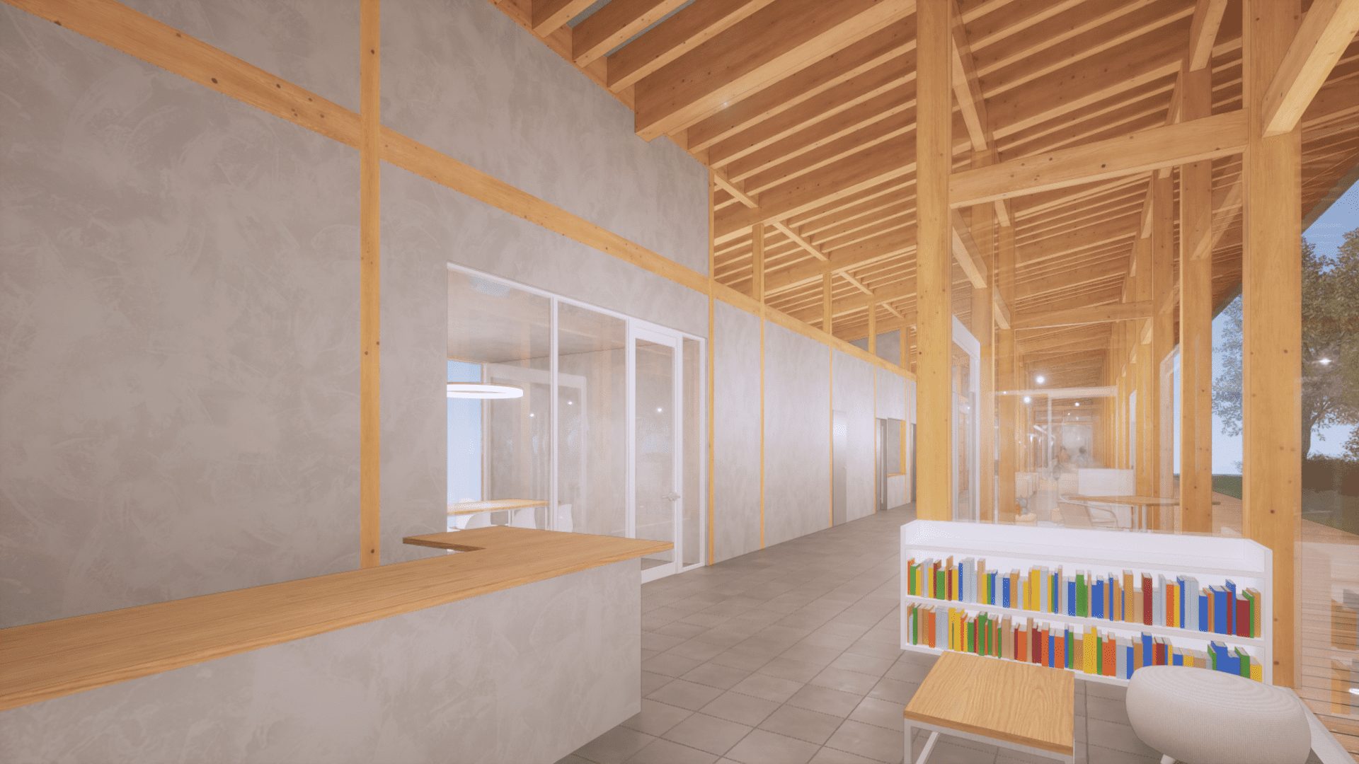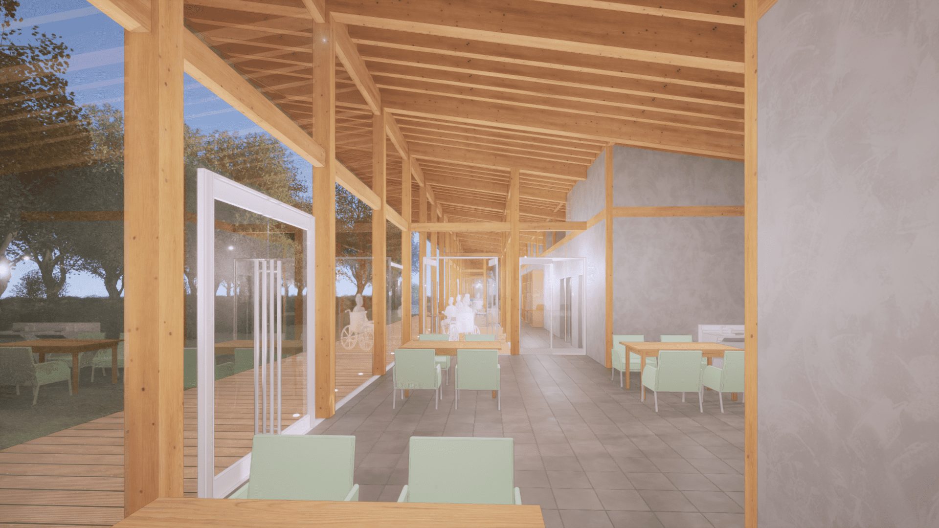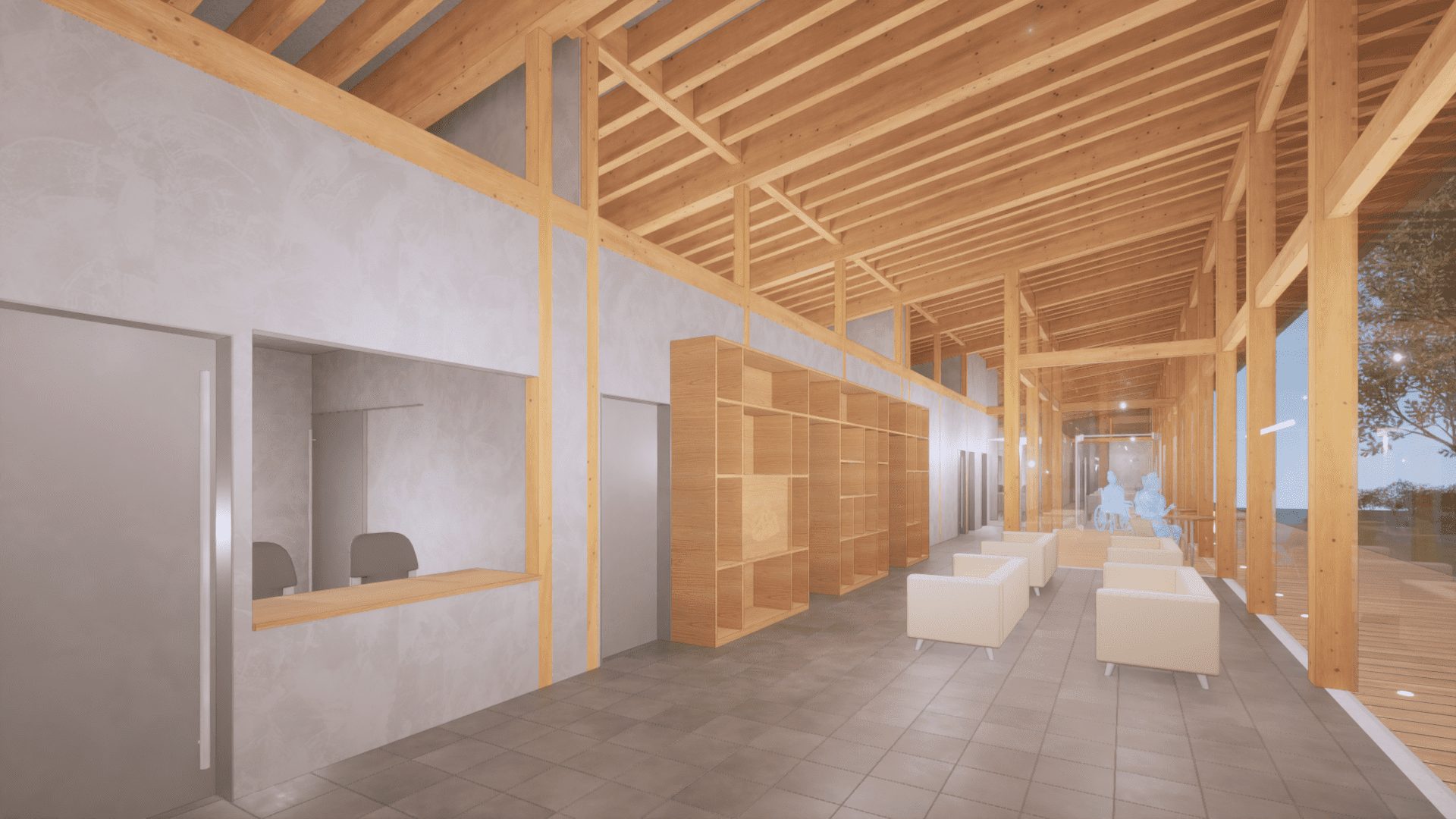 山林を活かしたクリニック・デイサービス・ディケア施設の第一期計画。 周辺の住宅団地の中で、地域の遊び場として残っていた山をできるだけ伐採をせず、自然と共存した形で「地域の診療所」を目指しての計画をしました。 第二期、第三期に続く計画の第一歩目としております。