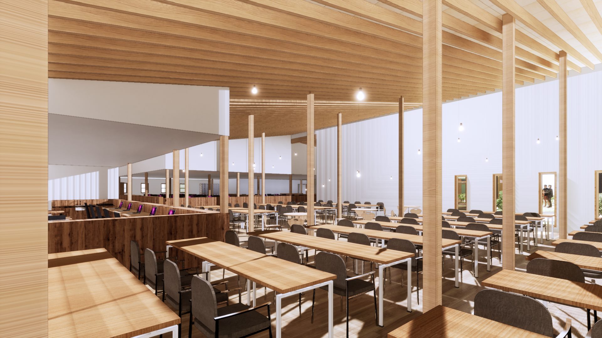 デイサービスとリハビリ施設、地域の交流の集会所を複合した施設。