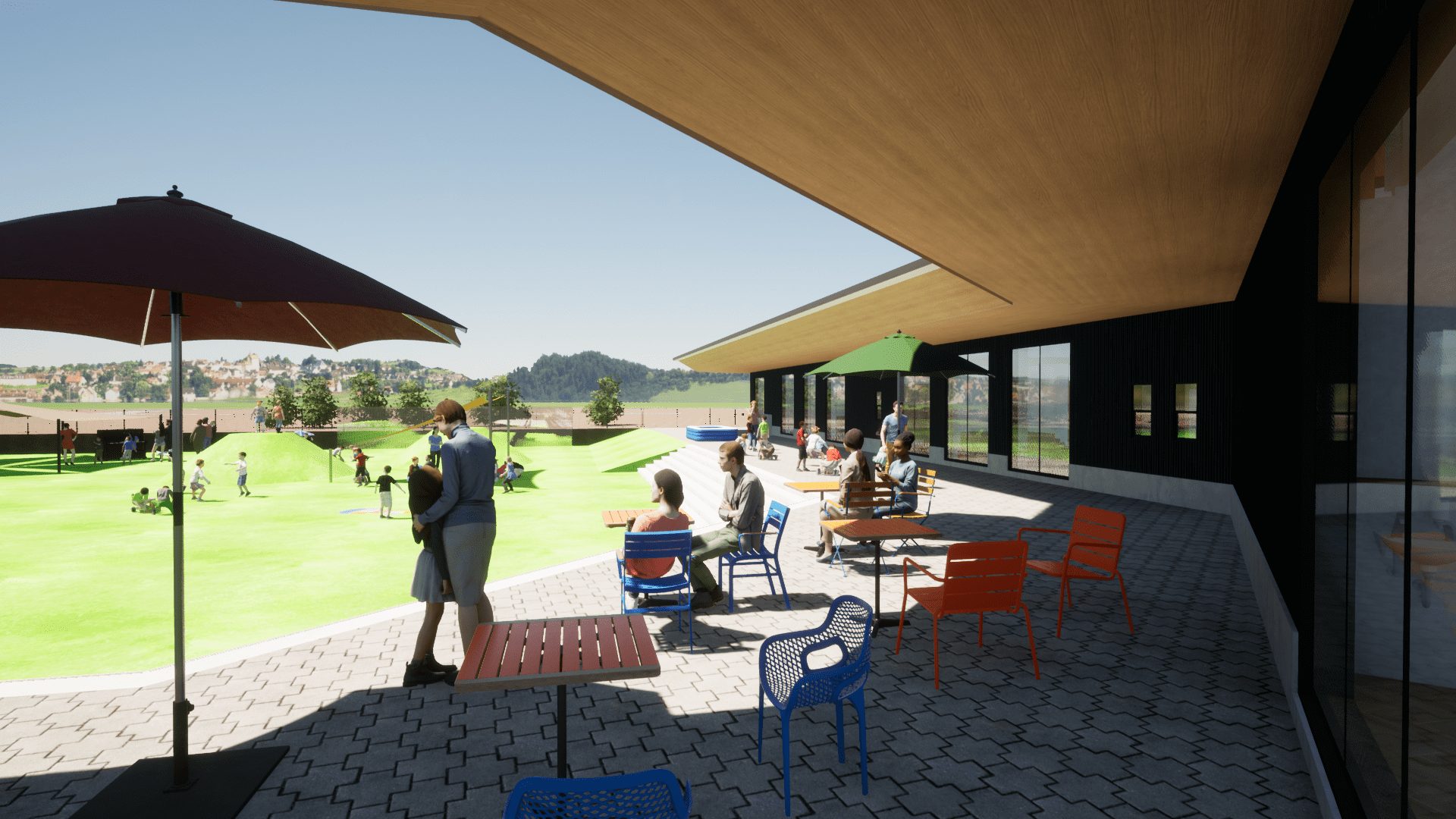 4種類の福祉系の用途が複合する福祉施設になります。 閉鎖的なデザインとならないようにガラスを多用しながら、地域の方が訪れやすい建物としております。 また、地域のシンボル的存在となるように屋根に変化を持たせたデザインとしております。